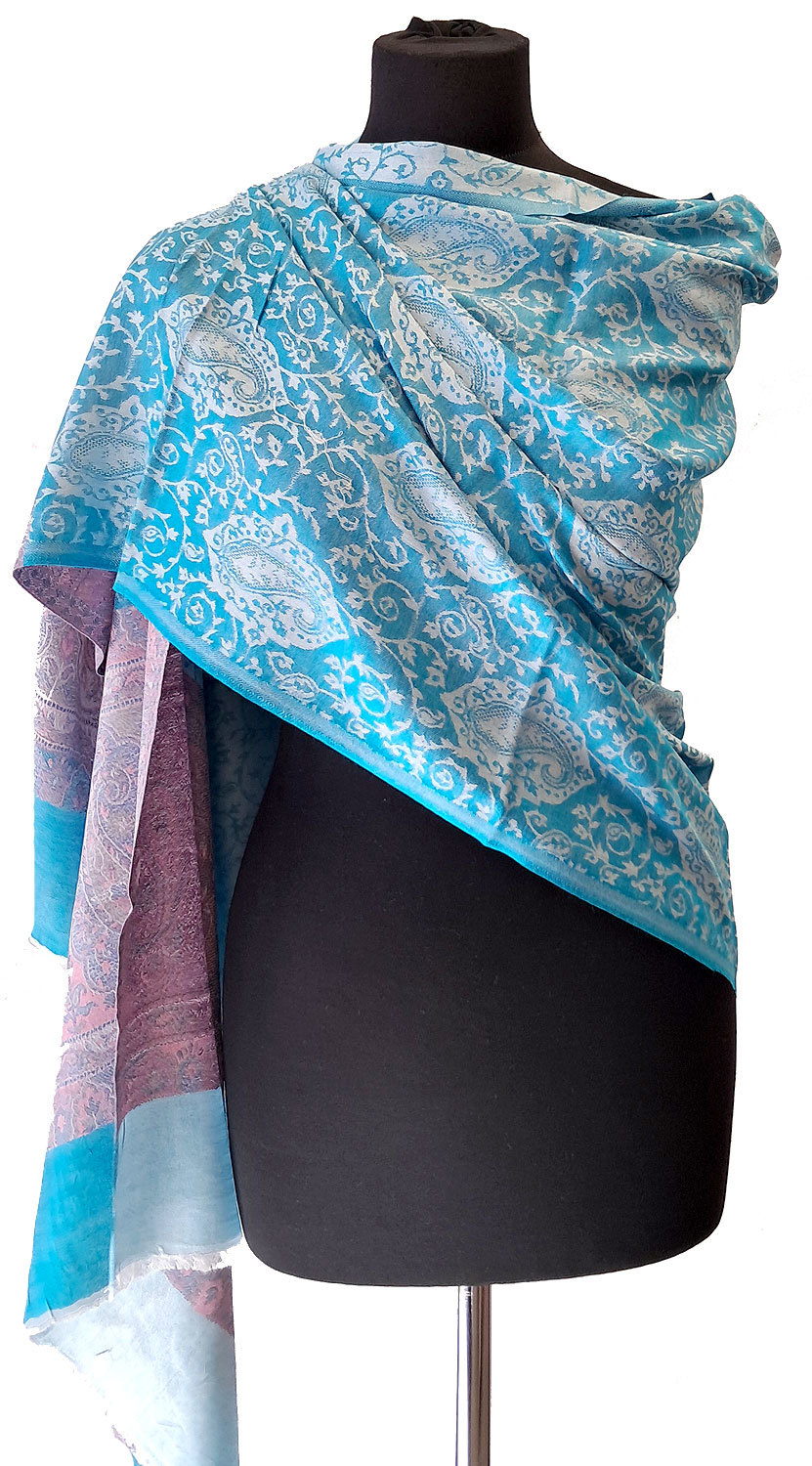 Elegantní brokátová šála z Himalájí tyrkysová sl3603