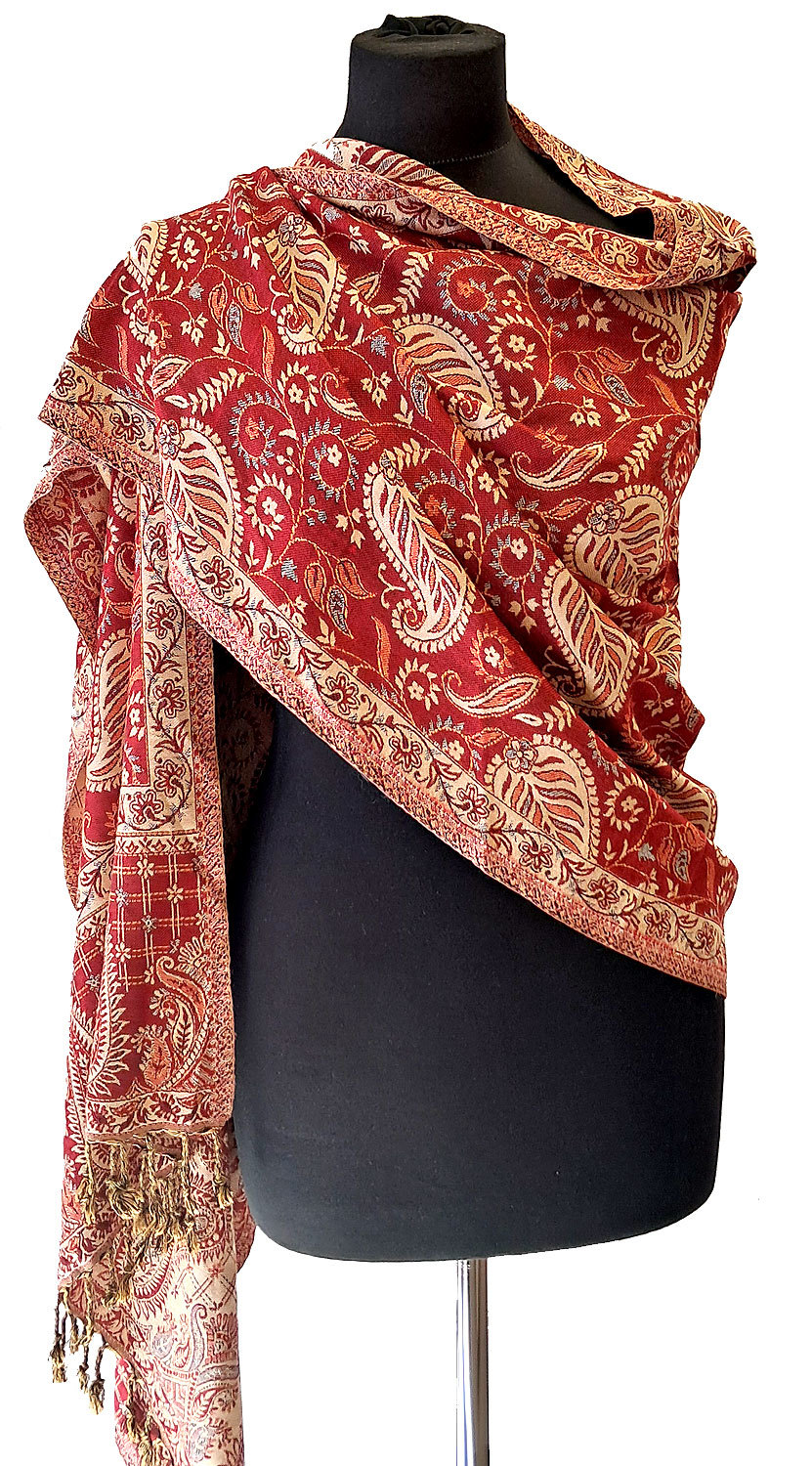 Hřejivá "kašmírová" šála z Indie - červeno-smetanová sl3562