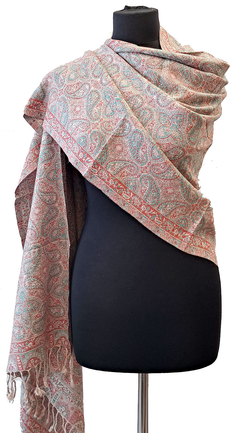 Vysoce kvalitní klasická šála z Himalájí je ozdobená krásným nadčasovým tradičním vzorem. Dokonale doplní podzimní, zimní i jarní oblečení - kabát i bundu. Lze též použít jako pléd přes večerní šaty. Velmi příjemně se nosí a krásně hřeje. Je oboustranná - ke každému outfitu může vypadat jinak.