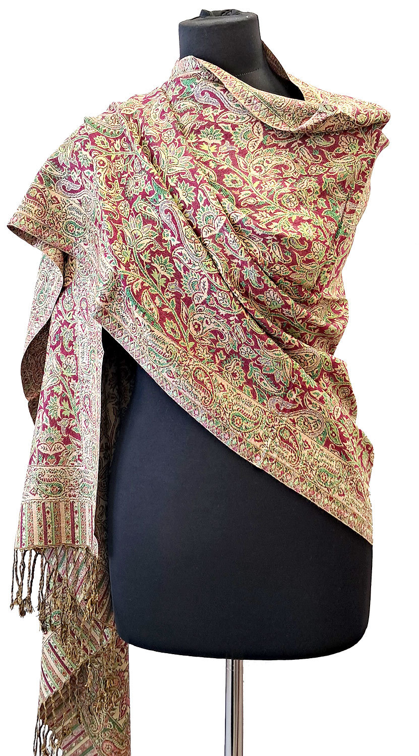Vysoce kvalitní klasická šála z Himalájí je ozdobená krásným nadčasovým tradičním vzorem. Dokonale doplní podzimní, zimní i jarní oblečení - kabát i bundu. Lze též použít jako pléd přes večerní šaty. Velmi příjemně se nosí a krásně hřeje. Je oboustranná - ke každému outfitu může vypadat jinak.