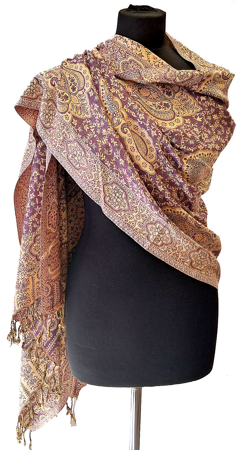 Hřejivá "kašmírová" šála z Indie - lila - smetanová sl3575