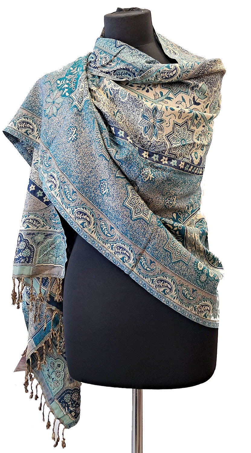Hřejivá "kašmírová" šála z Indie - modro-tyrkysová sl3654