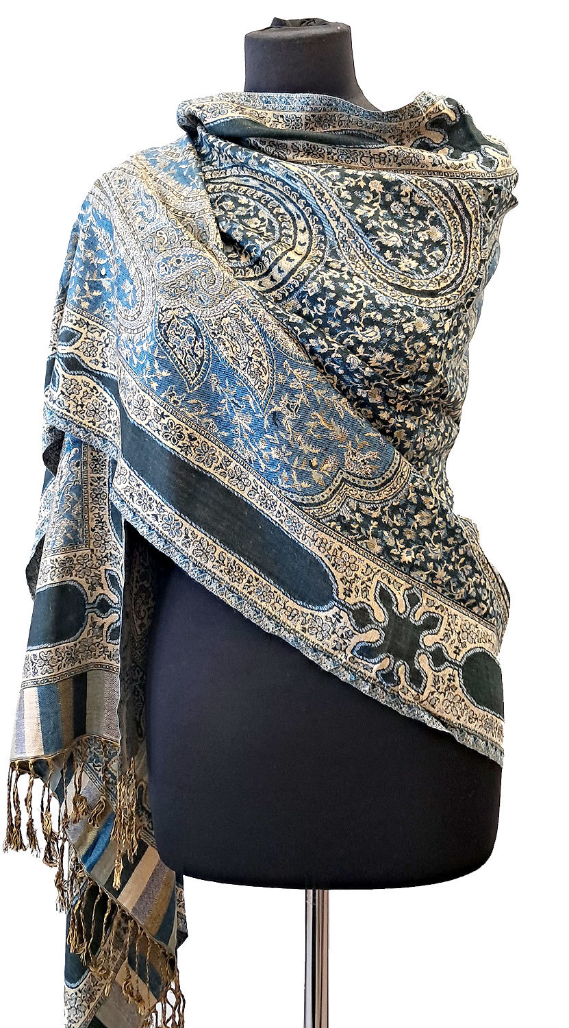 Hřejivá "kašmírová" šála z Indie - modrozelená sl3660