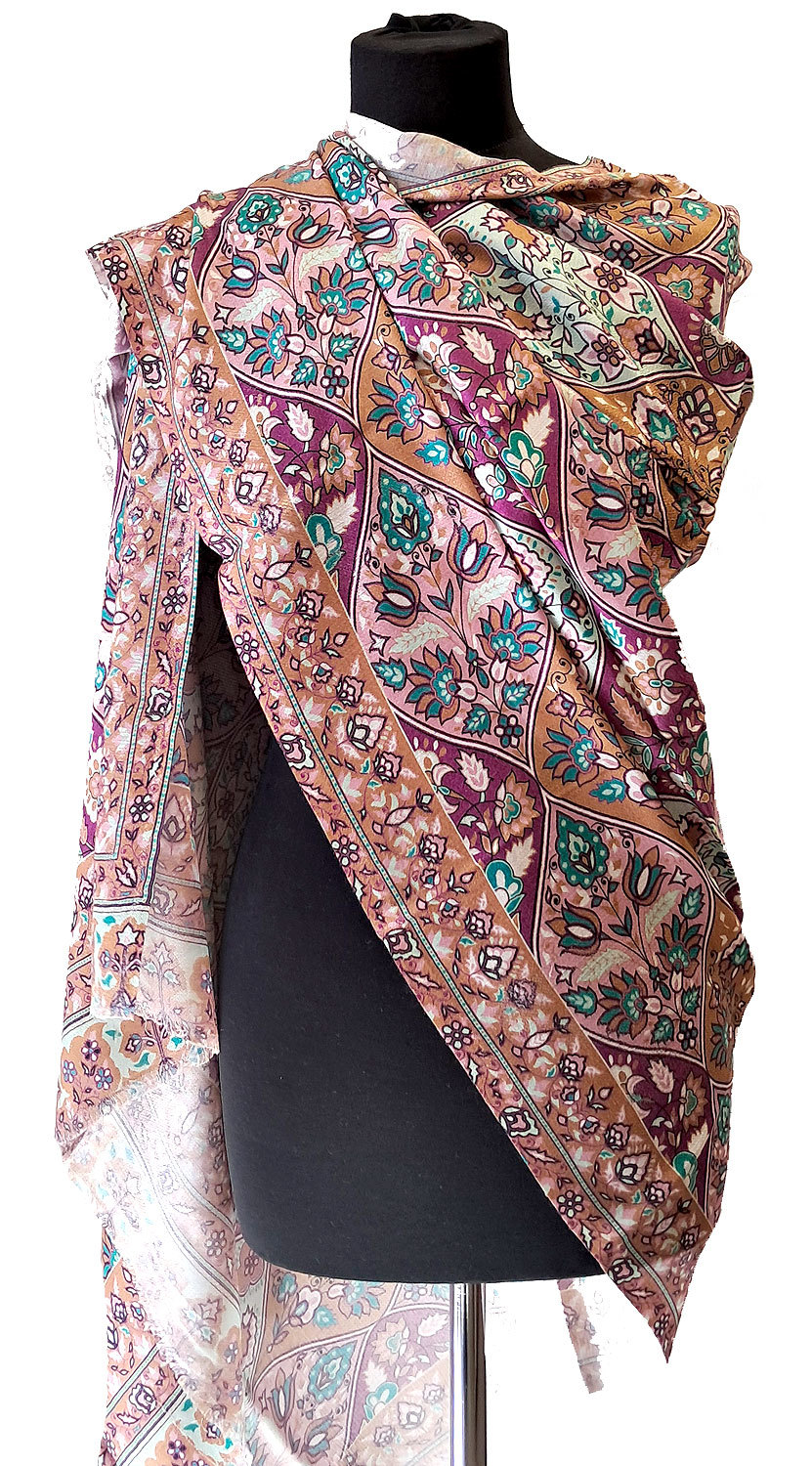 Jako úplnou novinku představujeme lehounkou, ale hřejivou šálu, nádherně zdobenou digitálním tiskem. Může se pochlubit jak nadčasovým orientálním vzorkem, tak dokonale sladěnými barvami. Je velmi příjemná na dotek i na nošení. Hodí se jak k evropskému, tak k orientálnímu oblečení.