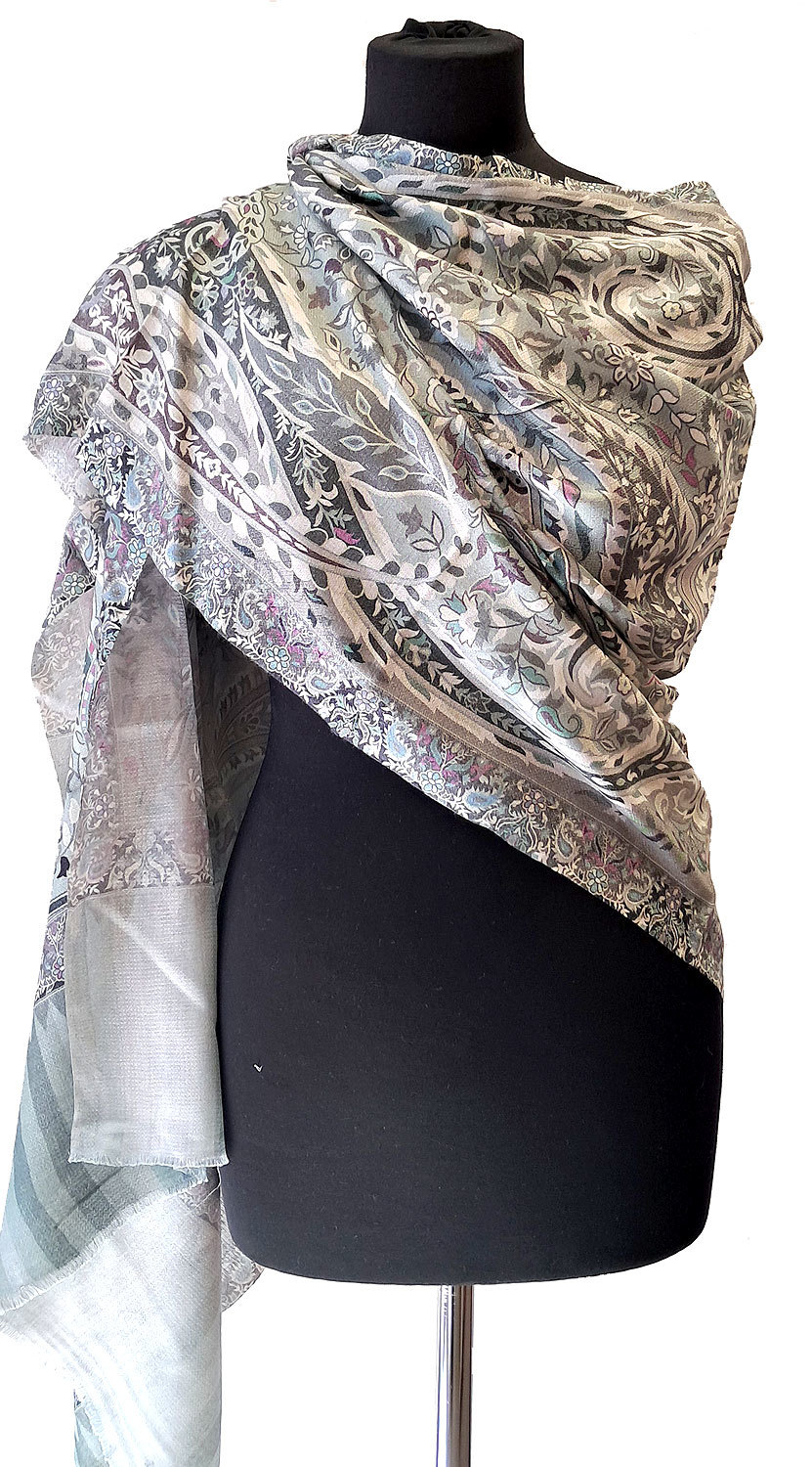 Jako úplnou novinku představujeme lehounkou, ale hřejivou šálu, nádherně zdobenou digitálním tiskem. Může se pochlubit jak nadčasovým orientálním vzorkem, tak dokonale sladěnými barvami. Je velmi příjemná na dotek i na nošení. Hodí se jak k evropskému, tak k orientálnímu oblečení.