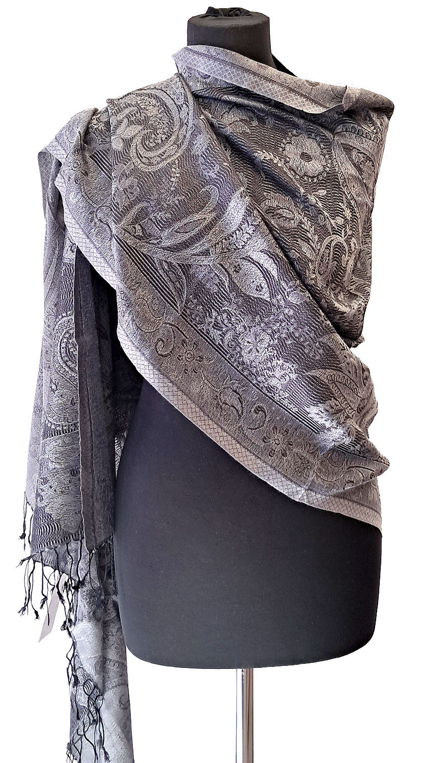 Luxusní, precizně zpracovaná šála překvapí náshedným vzorem s dokonale sladěnými barvami. Je dokonalou kopií několikanásobně dražších hedvábných šál a proto se velmi jemně leskne. Zdobí ji krásné indické ornamenty. Dokonale se hodí jak jako šála, tak jako pléd k šatům. Nádherně hřeje!