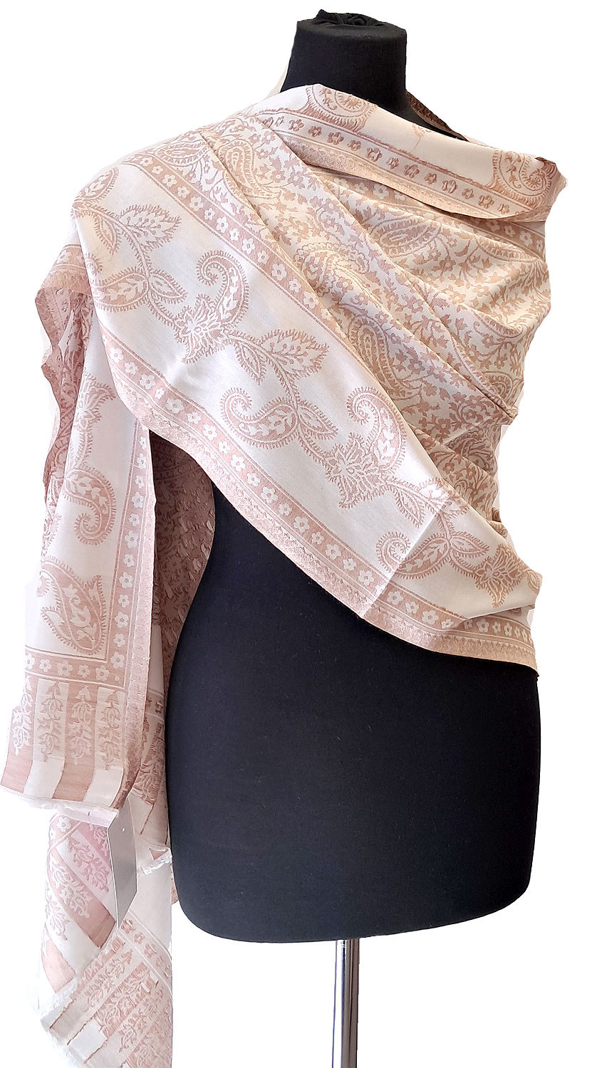 Nádherná univerzální šála vsadila na základní přírodní barvy a nadčasový kašmírový vzorek. Je velmi příjemná na dotek i na nošení. Krásně hřeje - je skvělá na podzim, zimu i jaro! Hodí se jak k evropskému, tak k orientálnímu oblečení.