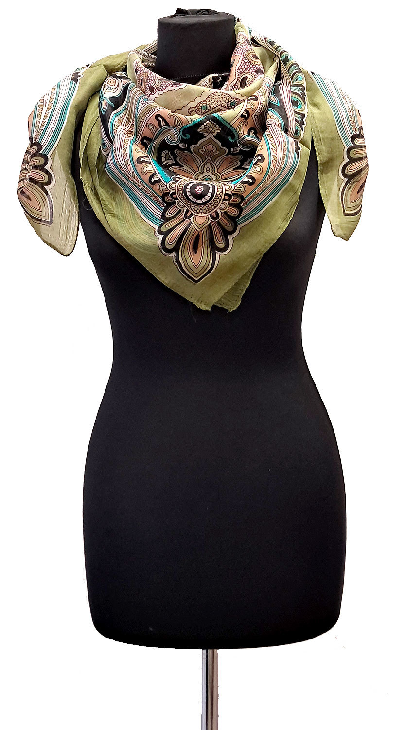 100% hedvábný šátek z pravého hedvábí olivový st2236