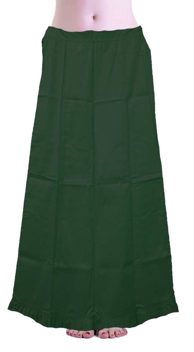 Spodnička by neměla ze sárí vykukovat, ale také by neměla být příliš krátká. Důležitý je obvod v pase - pokud máte více, než je maximální obvod, spodnička vám bohužel bude úzká. Naopak, pokud máte méně, vůbec to nevadí - spodničku lze stáhnout provázkem.