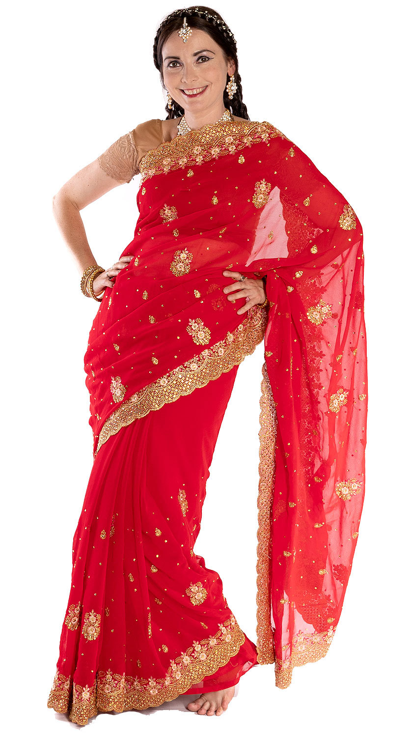 Na výšivky (flitry, kamínky, resham) se musí velmi opatrně. Perte zásadně (i když odolné výšivky mohou být vyjímkou a snesou lehký cyklus v pračce) v ruce s pracím práškem pro barevné prádlo nebo s mýdlem. Po vyprání vymáchejte v trošce aviváže. Pokud sárí obsahuje kovové části, pověste tak, aby uschnulo co nejdříve a neskladujte na vlhkém místě.