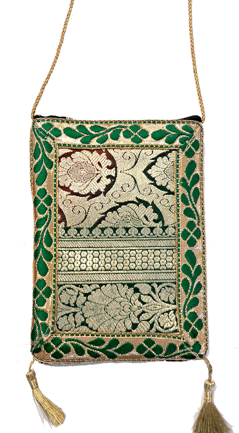 Stylová princeznovská taštička na mobil či jiné drobnější nezbytnosti má zapínání na zip a je upevněna na dlouhý provázek. Je polstrovaná a je vyrobená z překrásného královského brokátu. Vypadá perfektně a může se stát i dokonalým dárkem.